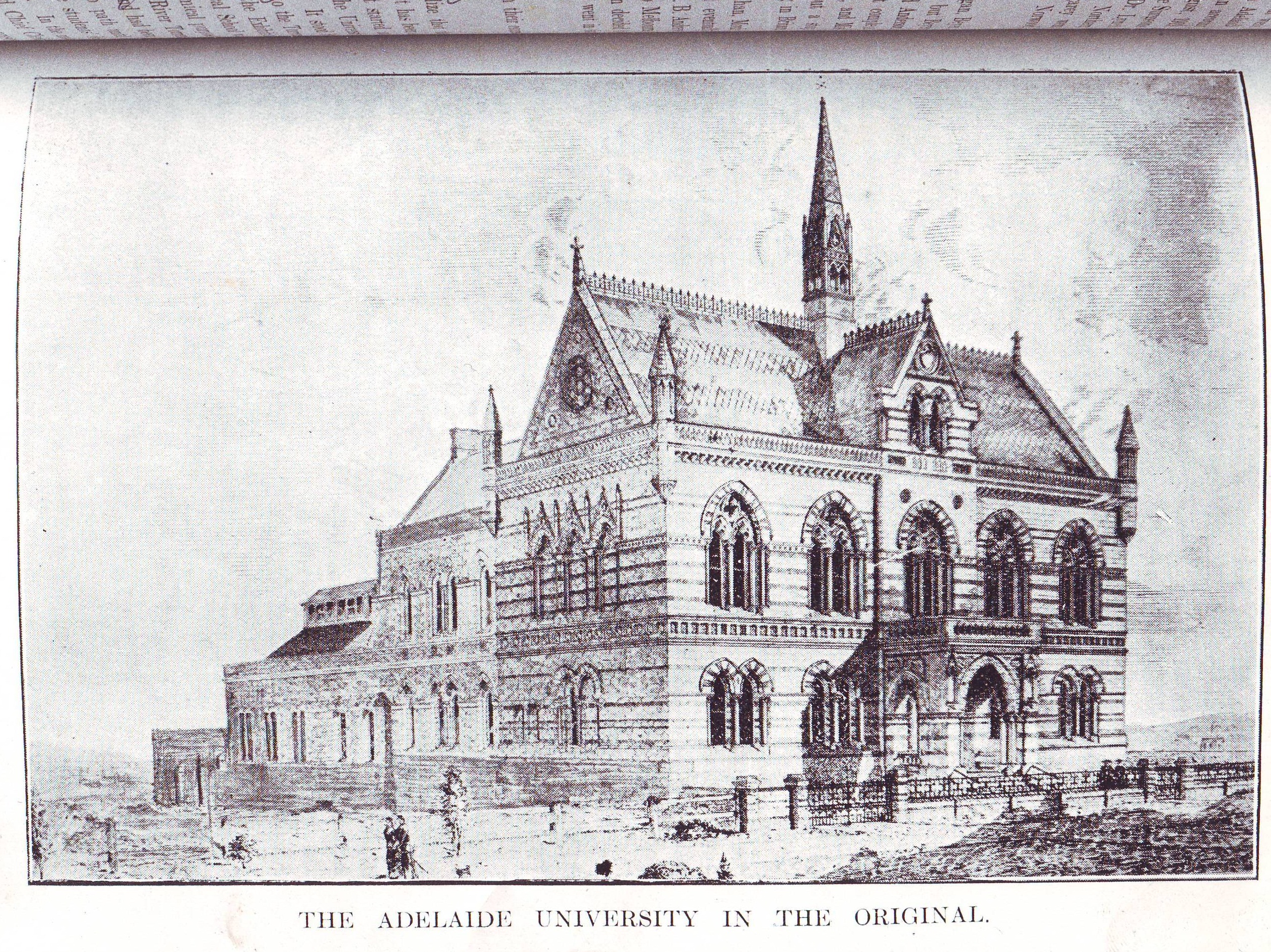Mitchell Building "The Adelaide University in the original" Sketch 1881 Reproduced from the Medical Students Society Review, 1929.