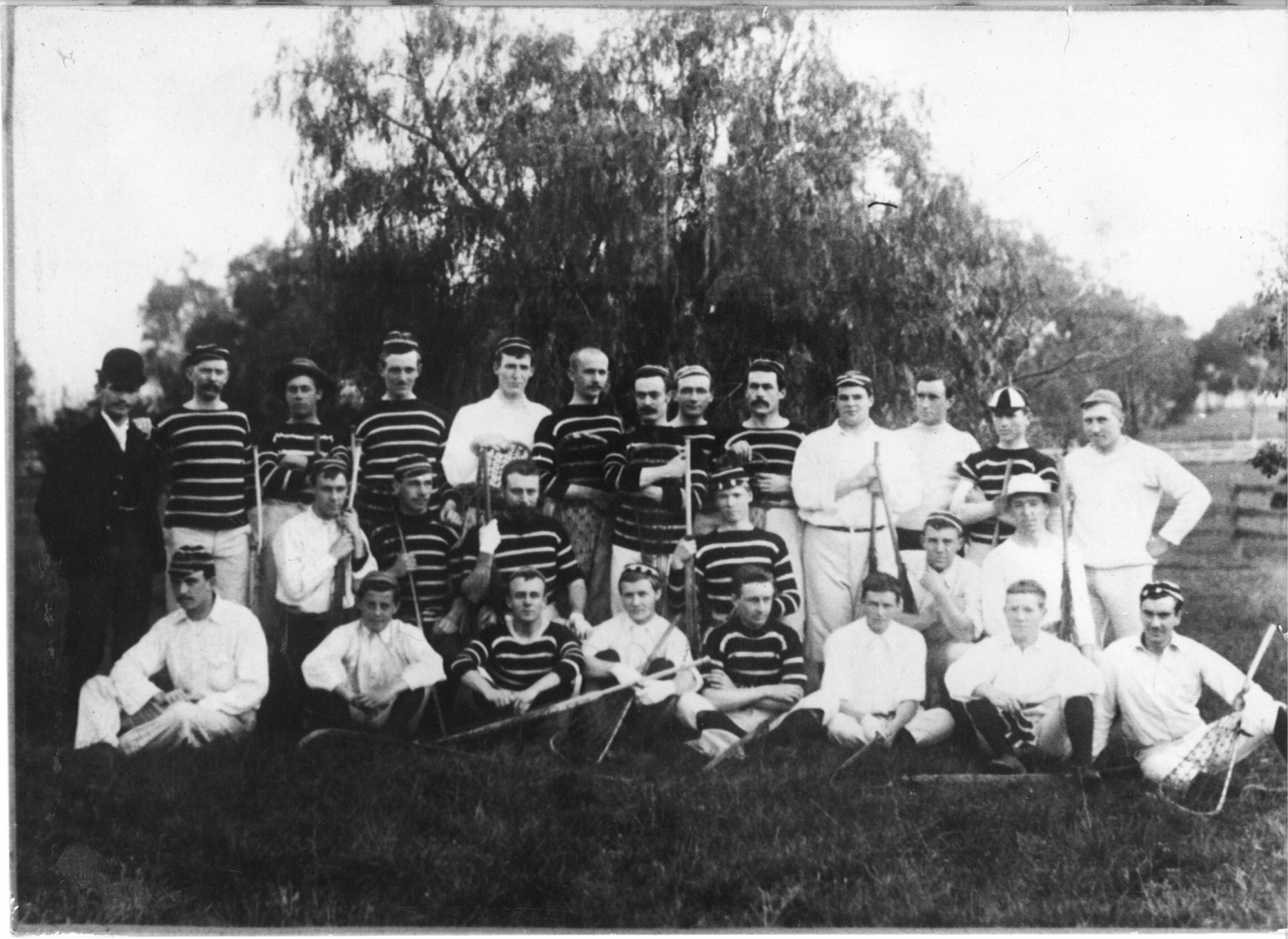 Unidentified lacrosse teams in park setting. Undated - circa 1900.