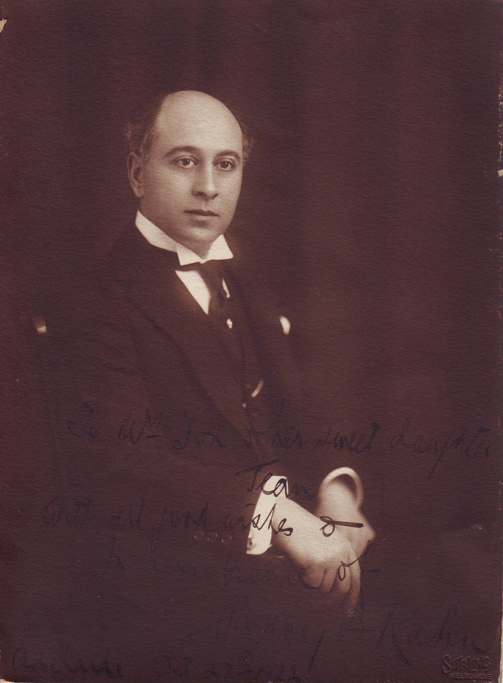 Sepia Photograph. Photographer: Stirling, Melbourne. Caption: "To Mrs Fox and her sweet daughter Jean. With all fond wishes and in remembrance of Percy B. Kahn. Adelaide Oct. 27th(?) 1922.