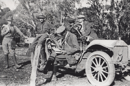 Left to right : Professor Sir Douglas Mawson; Arthur Alderman (succeded D.M. 1953); Dr. Cecil Madigan; R.G. Thomas; Mr Pierce, Manager "The Gums" station, Mt Mary, S.A.