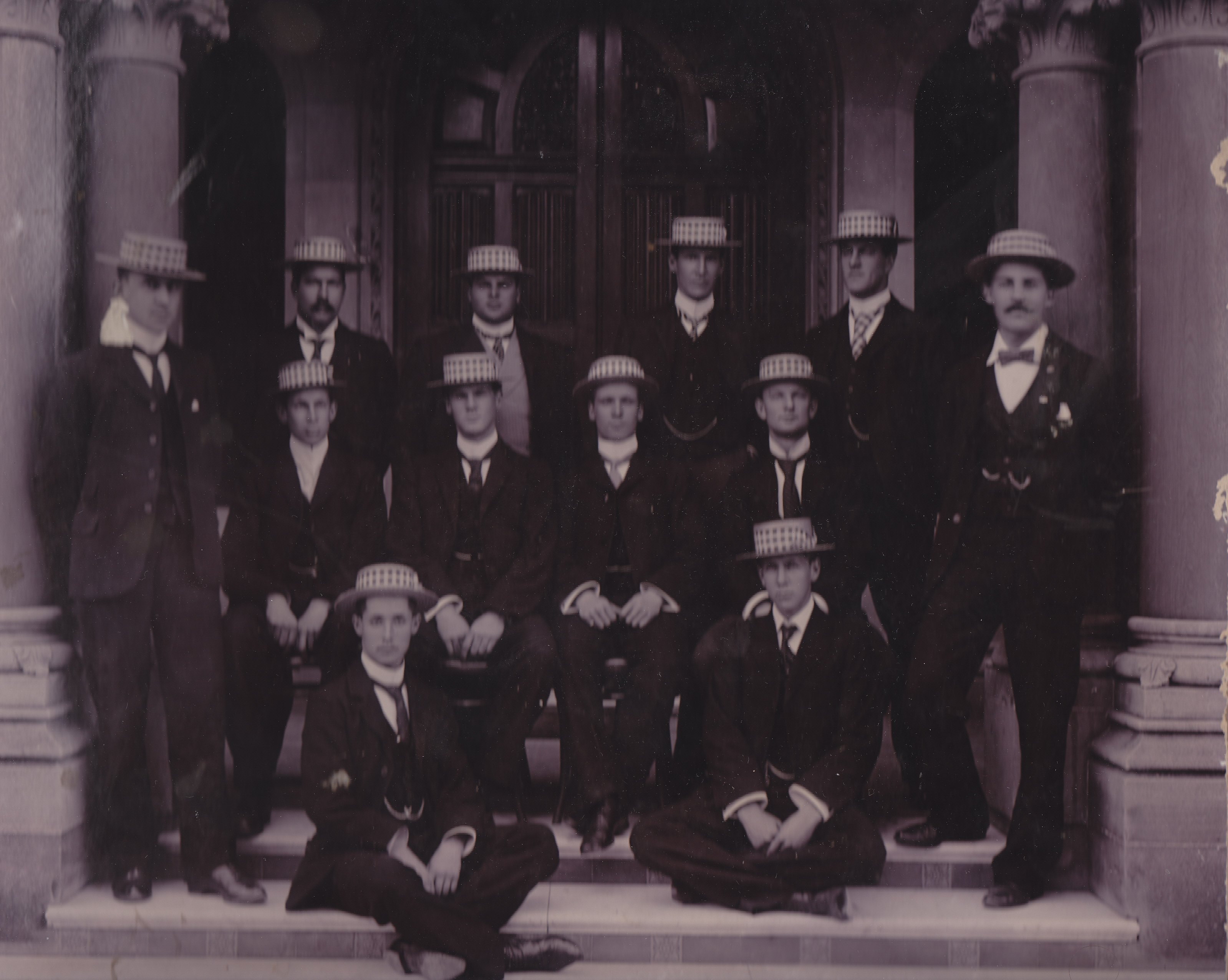 Back row: H.T.Ward, F.W.Magarey, J.Ayres, F.J.Downer, J.D.Connor, E.J.Stuckey. Middle row: S.H.Flemming, L.L.Jones, P.M.Newland, R.O. Nadebourn. Front row: B.M.Moore, E.Chapple.