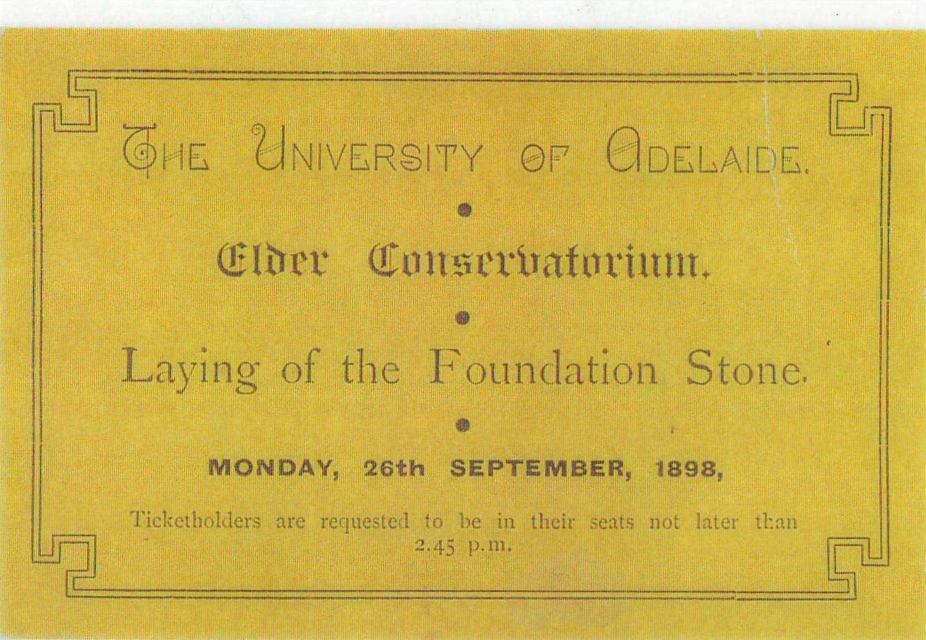 Ticket to laying of Foundation Stone of Elder Conservatorium