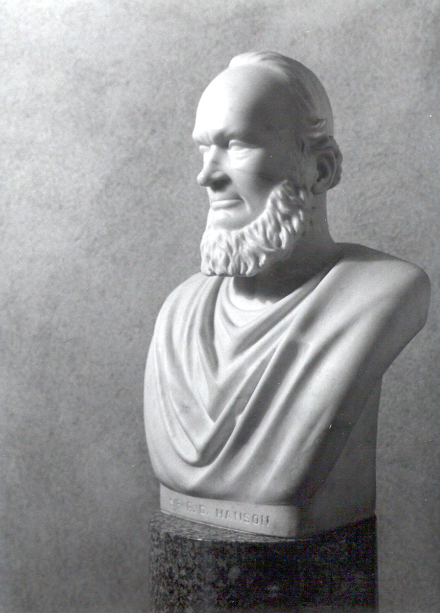 1. Black and white photograph of the bust of Sir. R.D. Hanson.